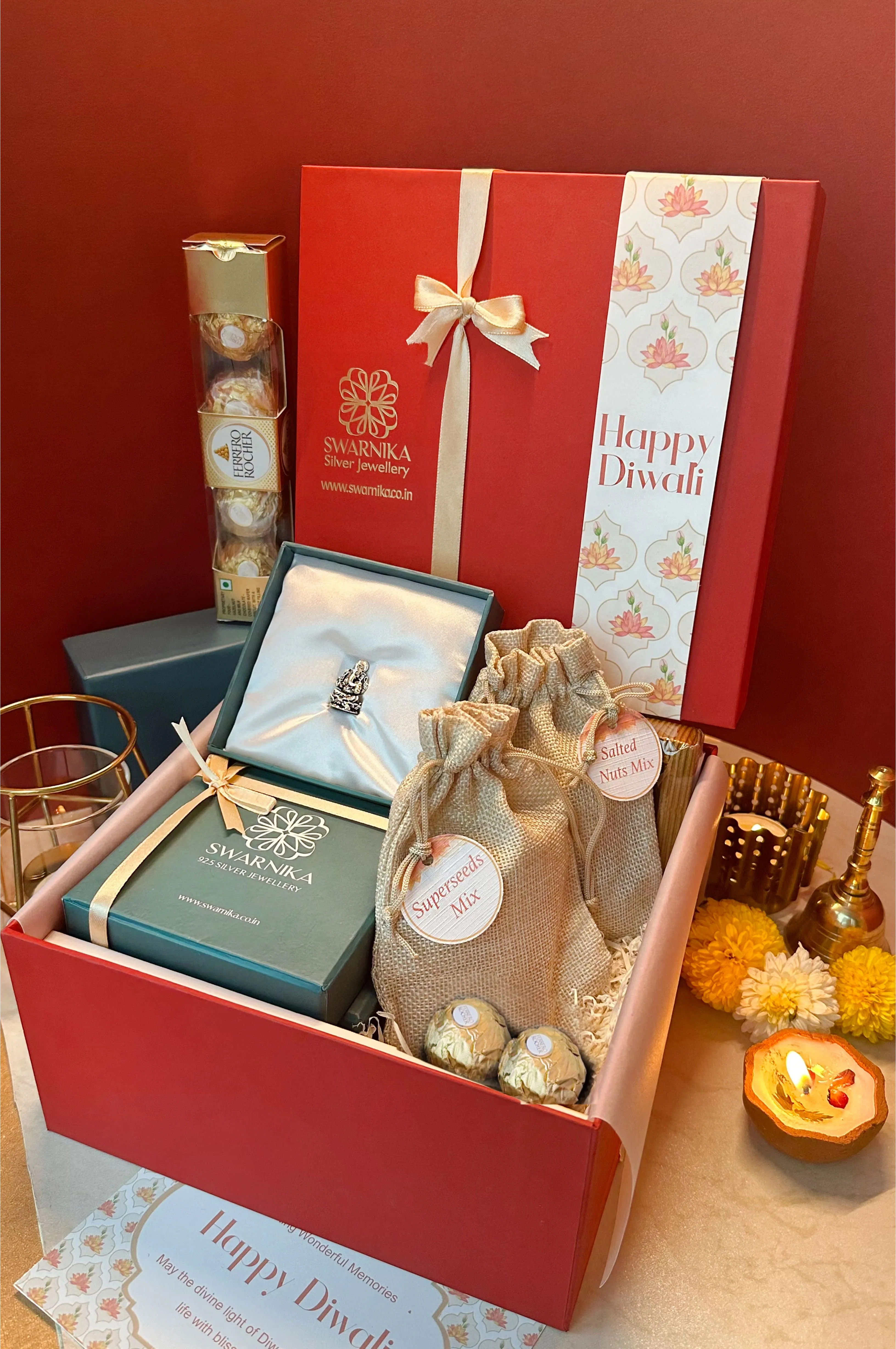 Divine Ganesha 925 Sterling Silver Idol - Family Wali Diwali Gift Hamper